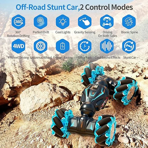 Stunt Car RC Gesture Sensor Best Toy Gift high speed Offroad 4WD Transforming Deformable Climbing Twist Remote Control Vehicle with Music By PRIME TECH Specifications: Brand Name: Stunt RC Car Driving time: 45 Mins Charging time: 3-4 hours Body battery: 7.4V 1200 mAh lithium battery (included) Remote Controller Battery: 2 x AA batteries (Not included) Speed: 25 km/H RC Distance: Watch controller: 80-100m, Remote controller: 35m Color: Red Material: Strong ABS Size: 42*22*9.5 cm Package Includes: 1 x Stunt RC Car 1 x 7.4V 1200 mAh Battery 1 x Remote Controller 1 x Watch Controller 1 x USB Cable 1 x English User Manual
